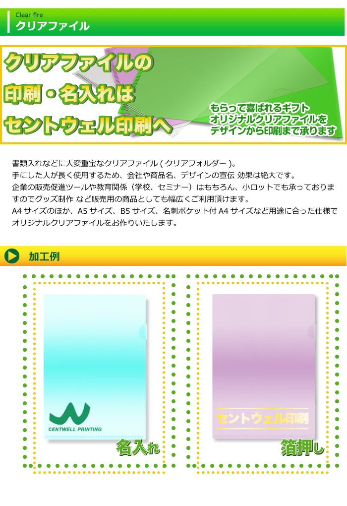 クリアファイルの印刷なら大阪 北区 梅田のセントウェル印刷株式会社